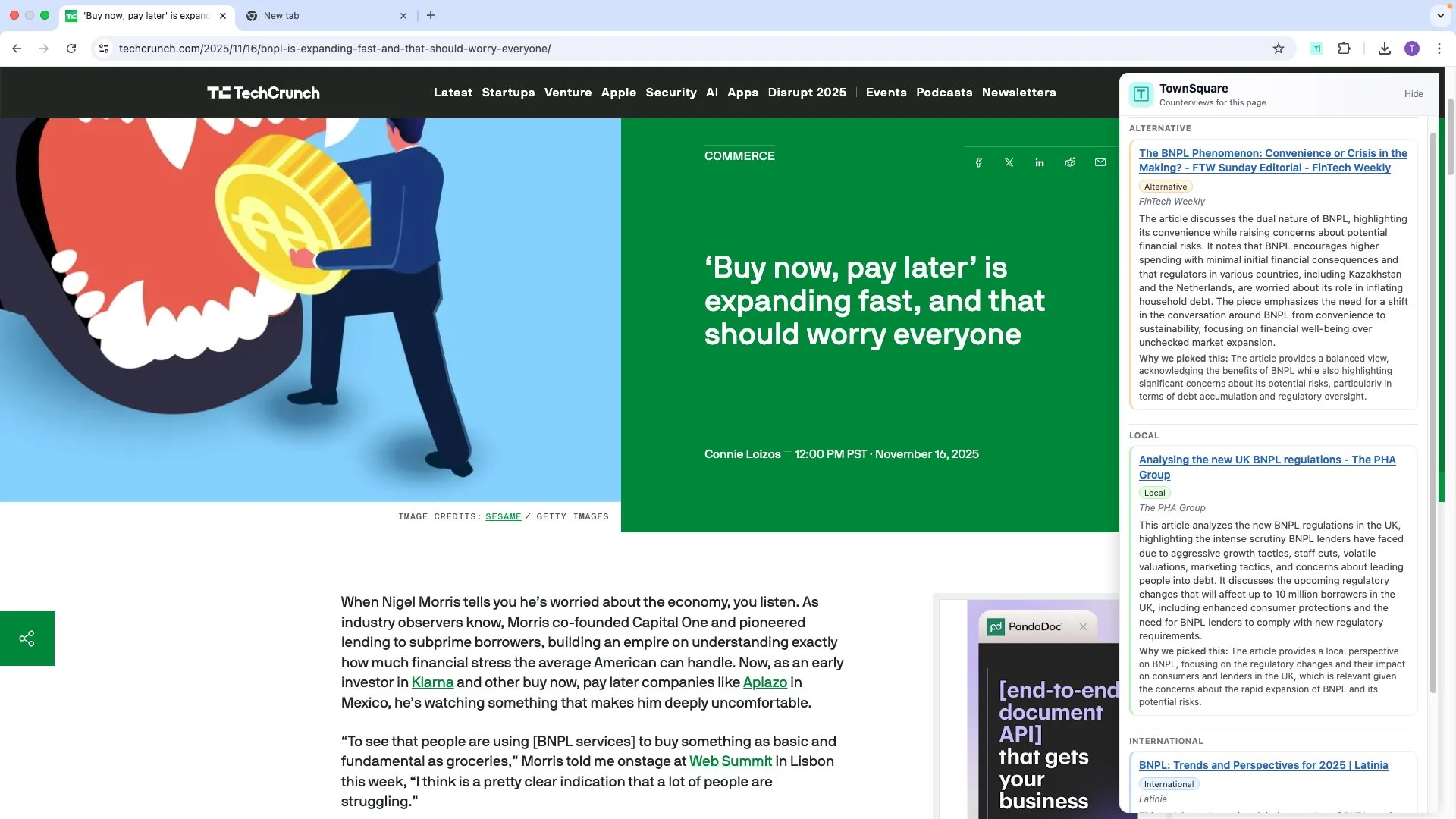 As you read an article, TownSquare quietly analyses the page and opens a sidebar that surfaces a range of perspectives from across the spectrum, plus niche takes you might never encounter otherwise. It simply helps widen the conversation, with explainable, credible alternatives.